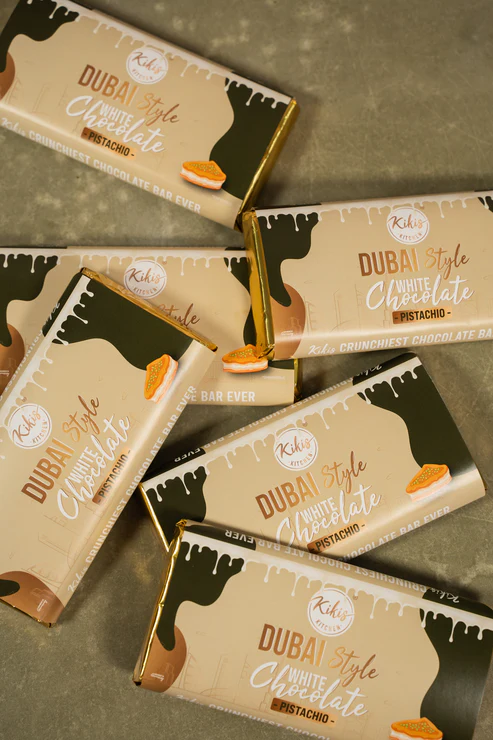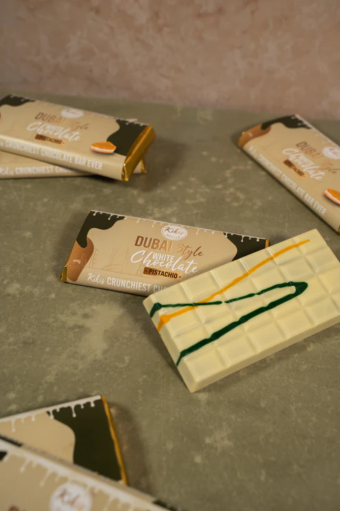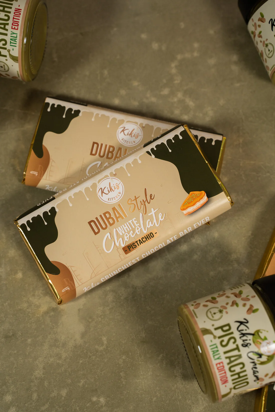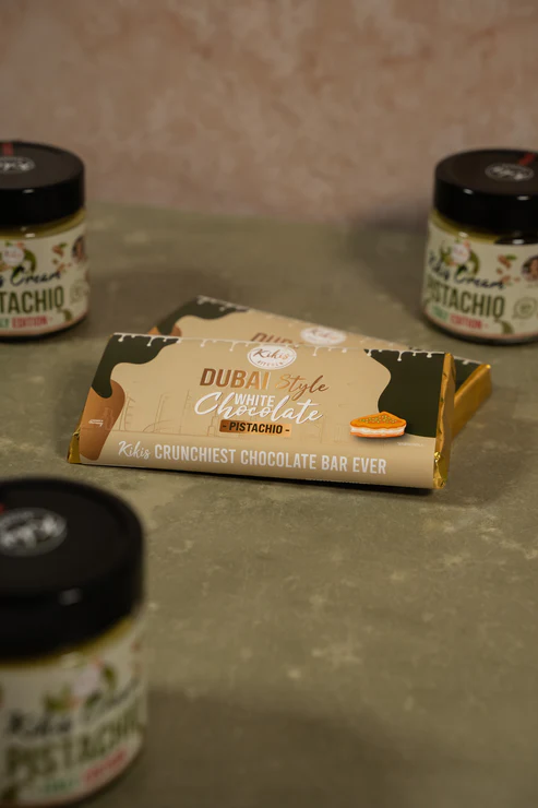 Inspiriert von einer Reise nach Dubai – und eurer riesigen Nachfrage – präsentieren wir euch unsere beliebte Schokolade jetzt im White Chocolate Dubai Syle! Die Kombination aus crunchy Kadayif, aromatischem Tahini und unserer beliebten „Kikis Cream PISTACHIO“ sorgt für ein einzigartiges Geschmackserlebnis. Orientalisch, intensiv & unwiderstehlich! ✨ Jetzt auch in der weißen Schokoladenvariante – cremig, süß und typisch „Dubai Style“.