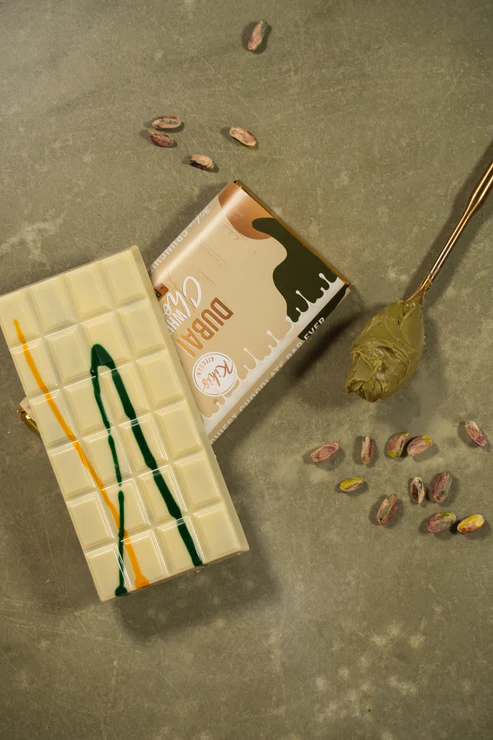 Die Mischung aus weicher Wei?schokolade, knusprigen Pistazien und dubaischem Design ist un¨¹bertroffen.